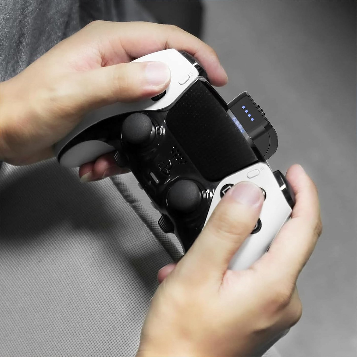 Especificamente criado para controles DualSense e Edge, este conjunto de baterias se encaixa perfeitamente na parte traseira do seu controle com uma interface de alimentação TIPO C. Slots laterais seguros garantem zero oscilação ou desprendimento durante jogos intensos.