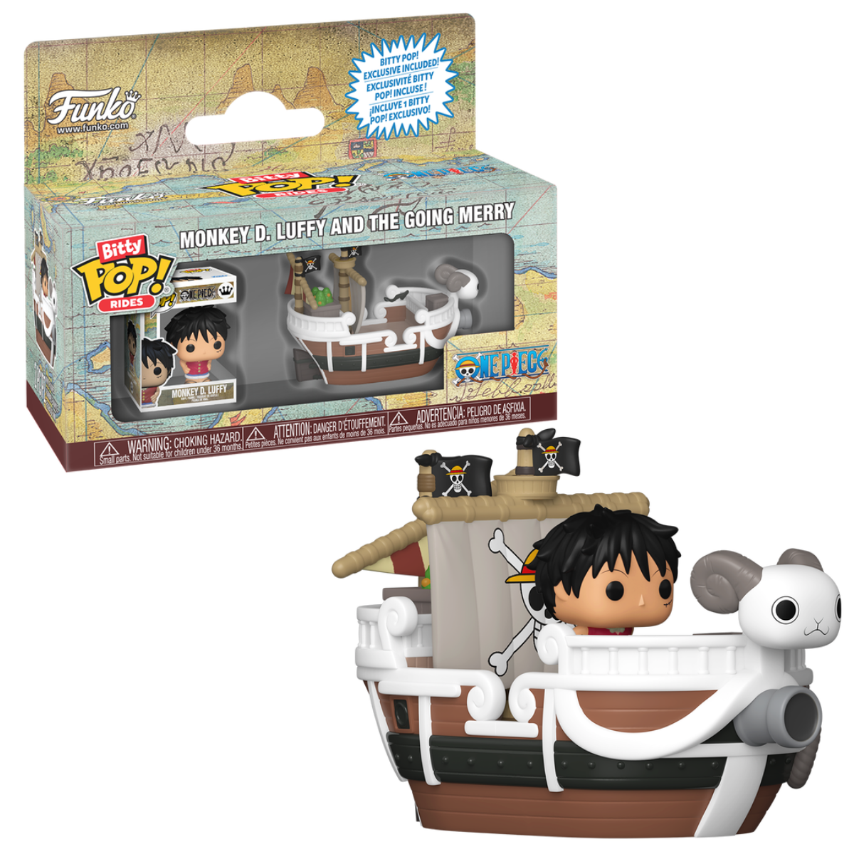 O mundo de POP! está ficando maior — e menor — com os colecionáveis Bitty POP! Expanda sua coleção de One Piece com Bitty POP! Ride Monkey D. Luffy e o Going Merry!