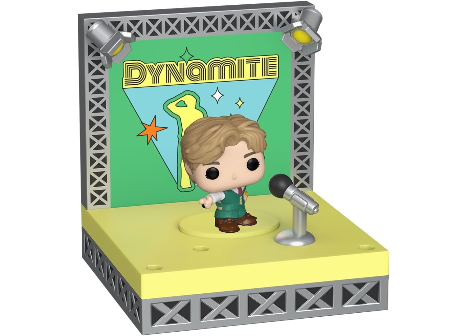 Remova o Bitty POP! V da caixa de acrílico para colocá-lo no Palco Bitty POP! “Dynamite” e recriar o icônico momento do grupo em sua estante!