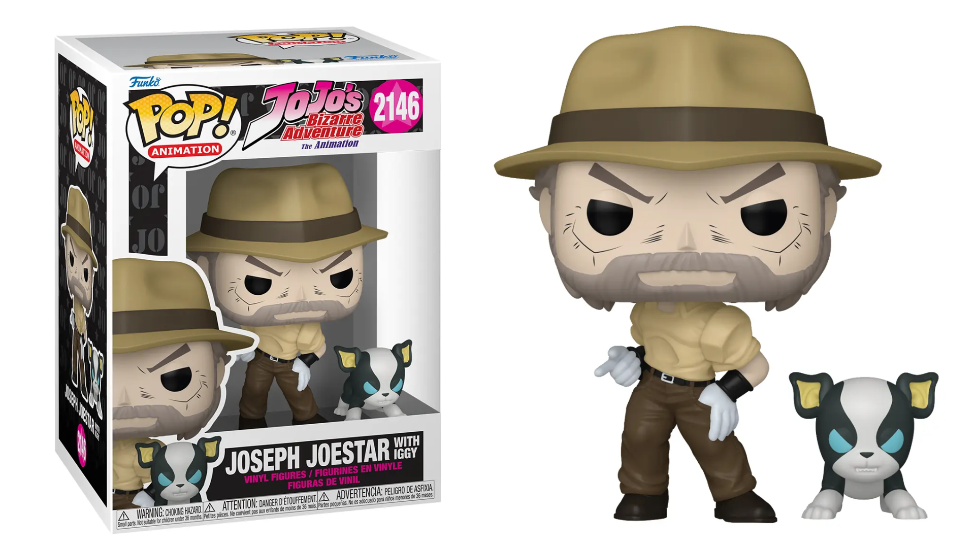 01 - Funko Pop Jojo’s Bizarre 2146 Joseph Joestar w/ Iggy.