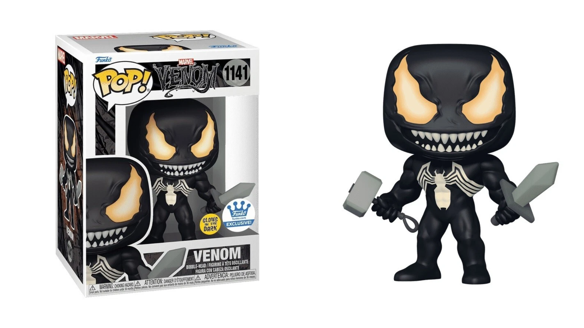 01 - Funko Pop Venom 1141 Venom w/ Mjonir & Sword Glows Exclusive.