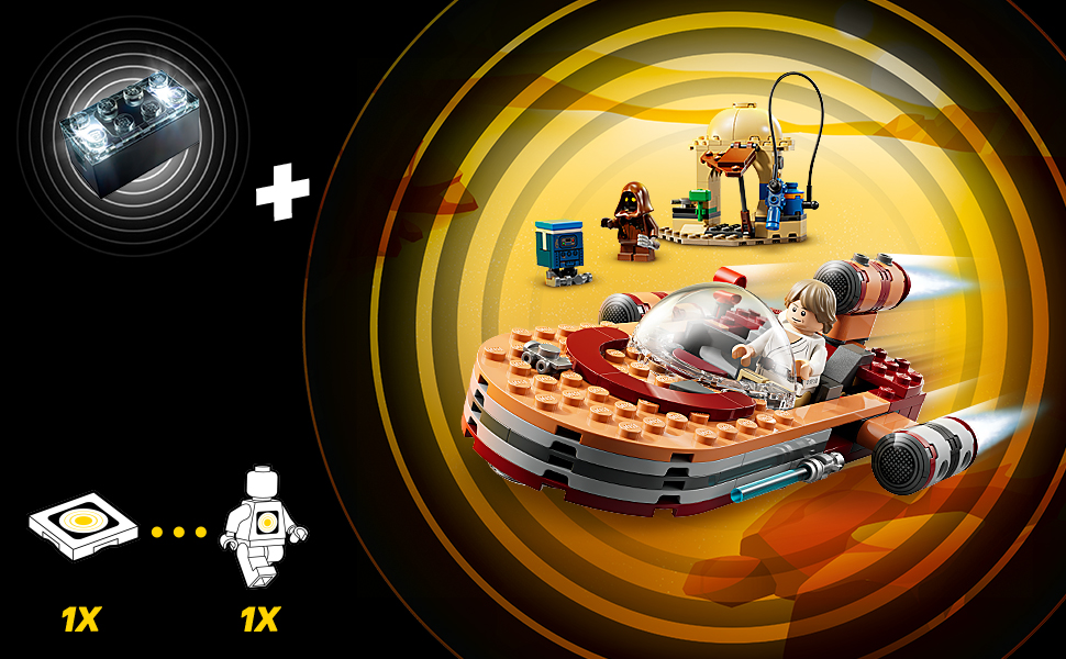 Rápido! Luke Skywalker precisa da sua ajuda para consertar seu speeder! Adicione um LEGO SMART BRICK (incluído separadamente nos conjuntos Tudo-em-Um) a este conjunto compatível com LEGO SMART PLAY para ativar os sons do motor, do martelo e do abastecimento enquanto você faz os reparos para deixar Luke pronto para sua próxima aventura.
