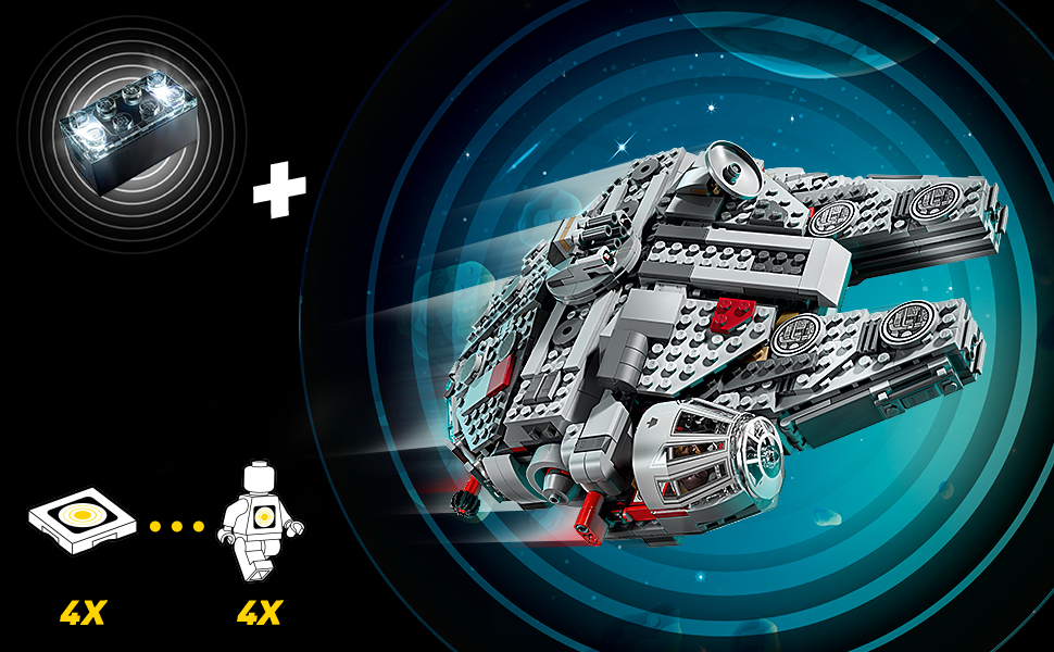 Crie novas aventuras com personagens icônicos que ganham vida com o LEGO SMART Play. Coloque o LEGO SMART BRICK (incluído separadamente nos conjuntos Tudo-em-Um) na nave para ouvir os sons da Millennium Falcon e da tripulação enquanto lutam contra o Império.