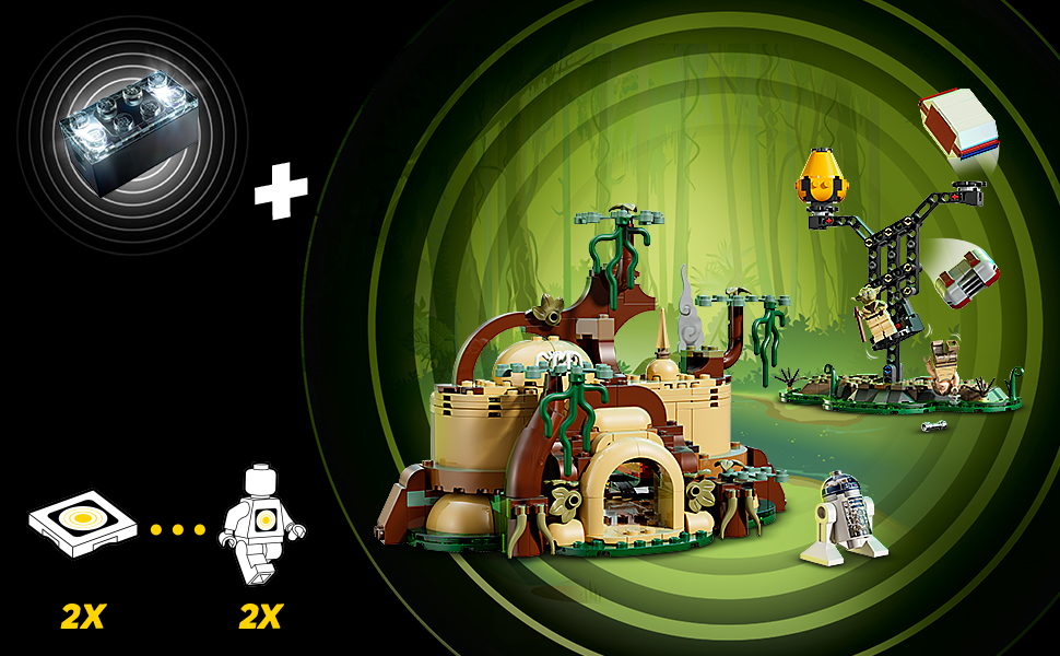 Ajude Luke Skywalker a se tornar um mestre Jedi durante seu treinamento com Yoda. Use o LEGO SMART BRICK (incluído separadamente nos conjuntos Tudo-em-Um) para dar vida à cena com reações inteligentes do Yoda e sons de culinária.